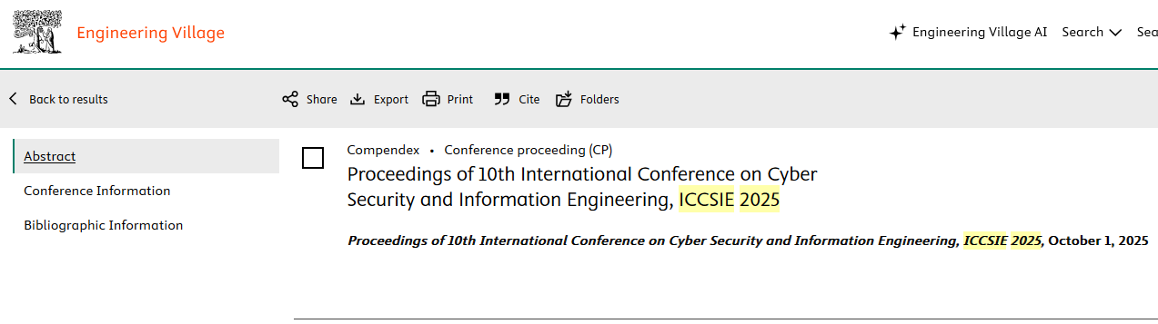 ICCSIE 2025 Conference proceedings was indexed by EI!